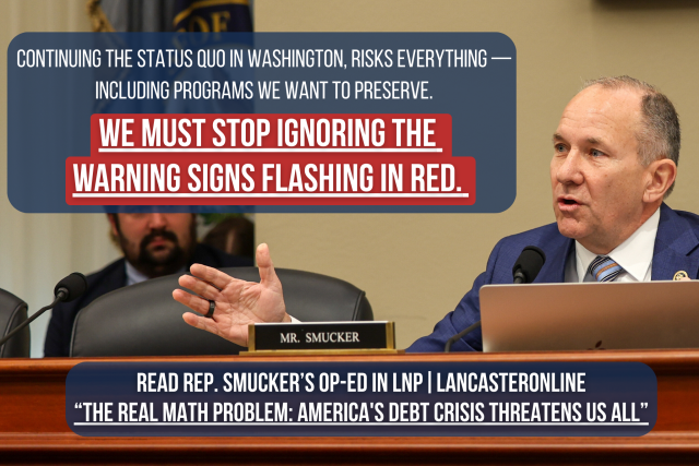 In a recent op-ed for LNP | LancasterOnline, I sounded the alarm on the unsustainable trajectory of our nation’s finances. With a national debt surpassing $36 trillion and projected to continue growing at a rate of nearly $2 trillion every year, we must take action.
